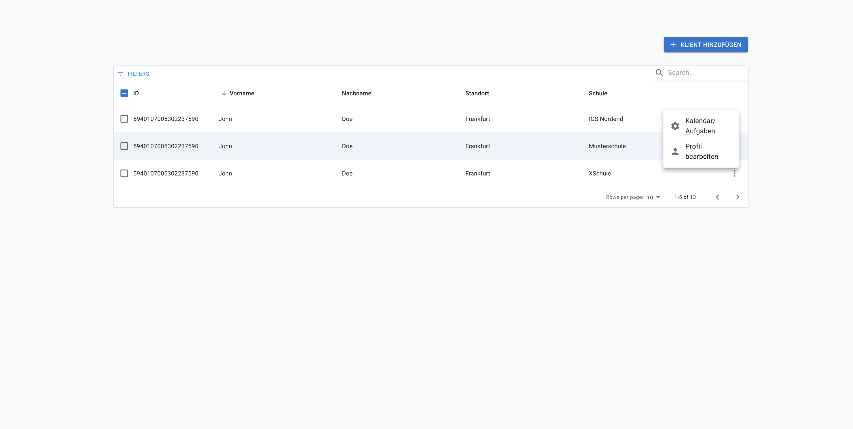 Dashboard Liste in der Software von JustManageIT für Schulbegleitung.