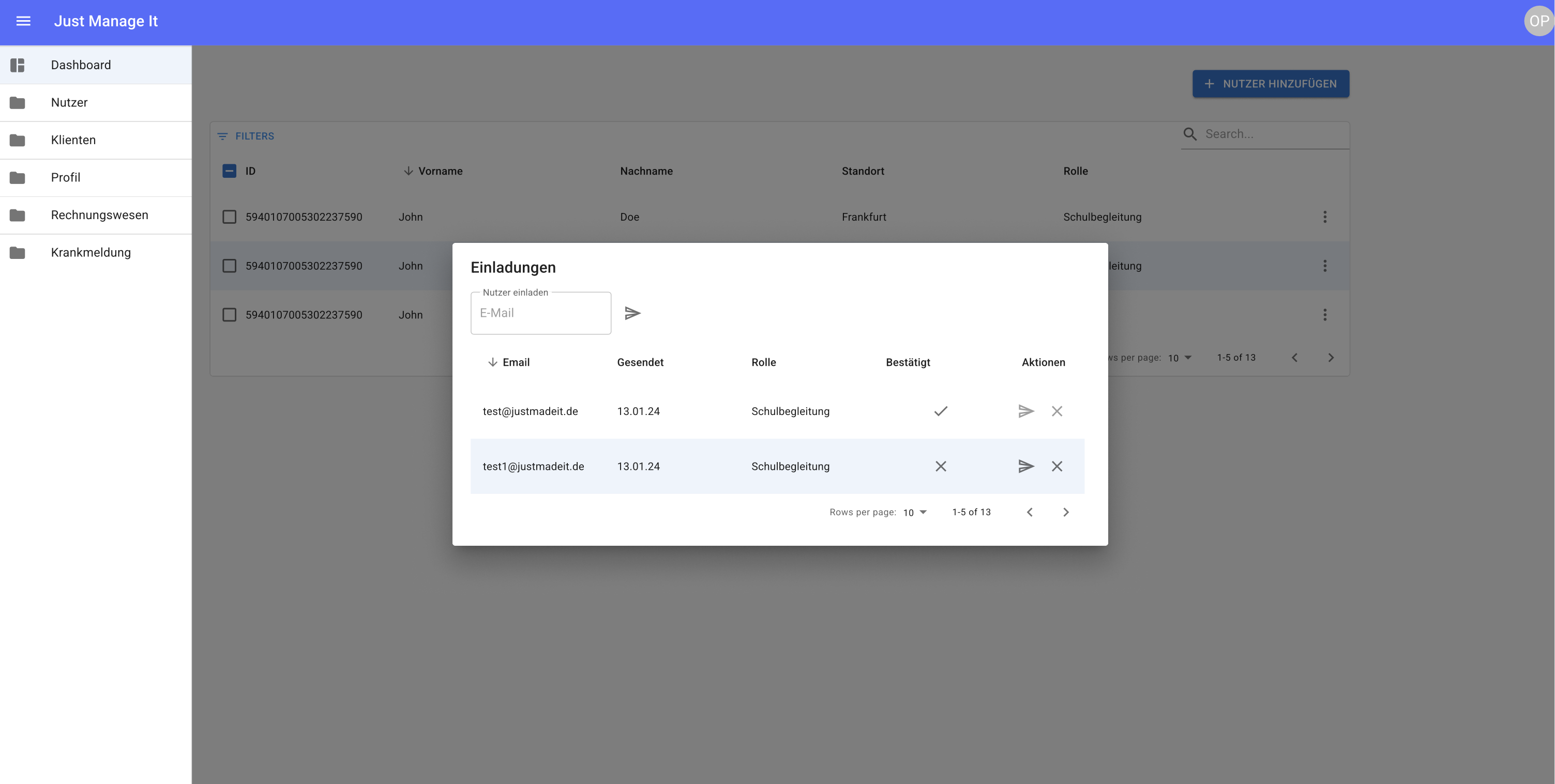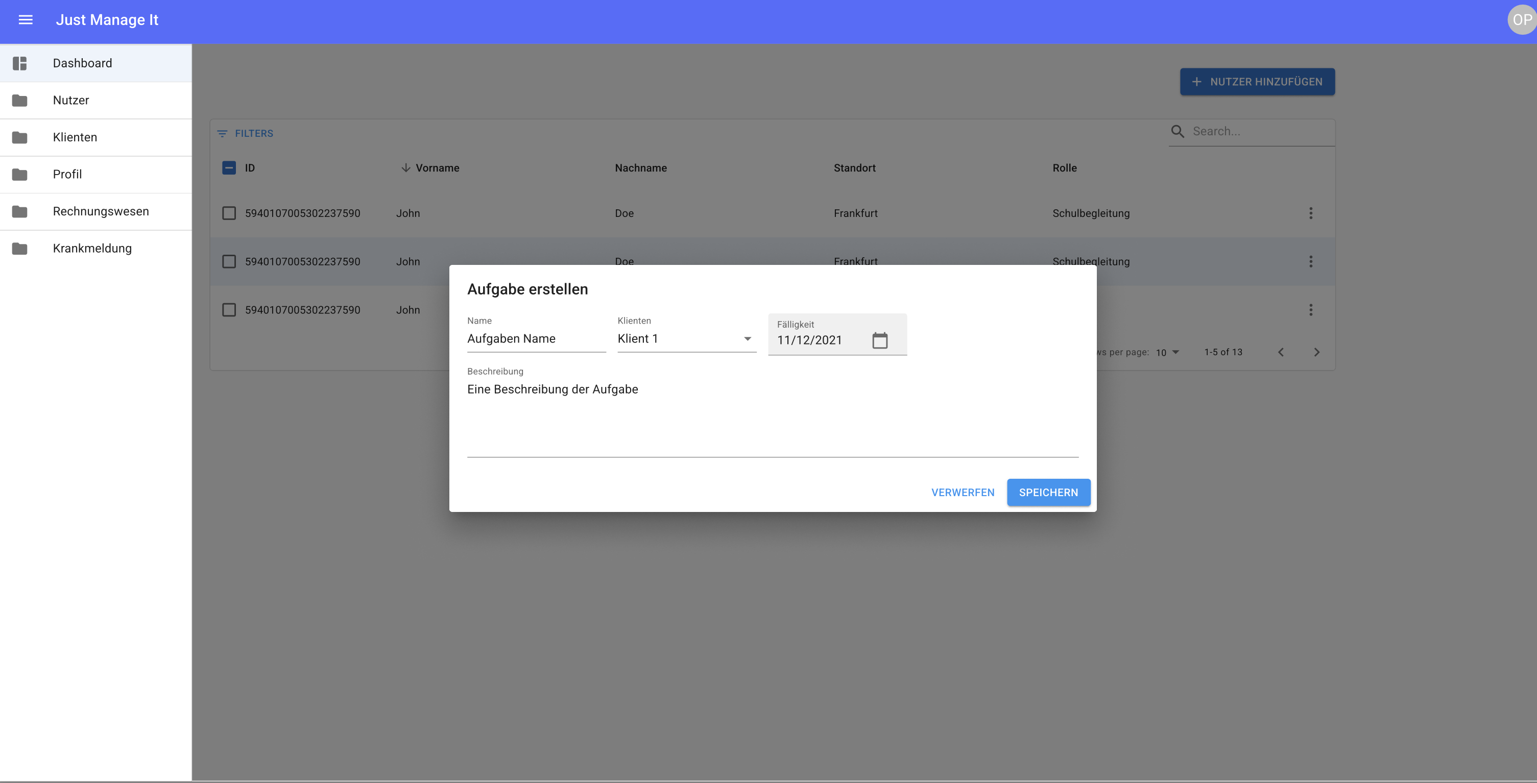 Einblick in die Software von JustManageIT für Schulbegleitung.